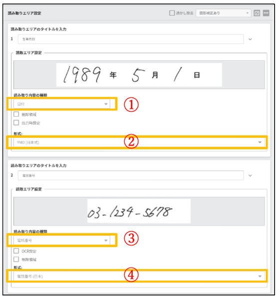 ※日付や電話番号を読み取る場合に地域により異なる形式を選択することができます。