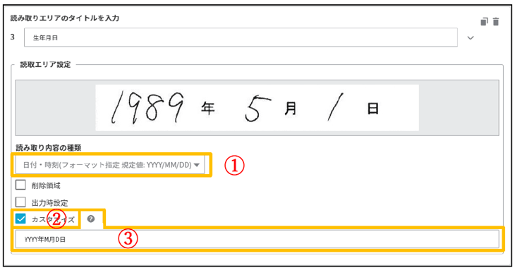 ※形式が決まっている日付や時刻を読み取る場合に日付と時刻の読取形式を設定することができます。