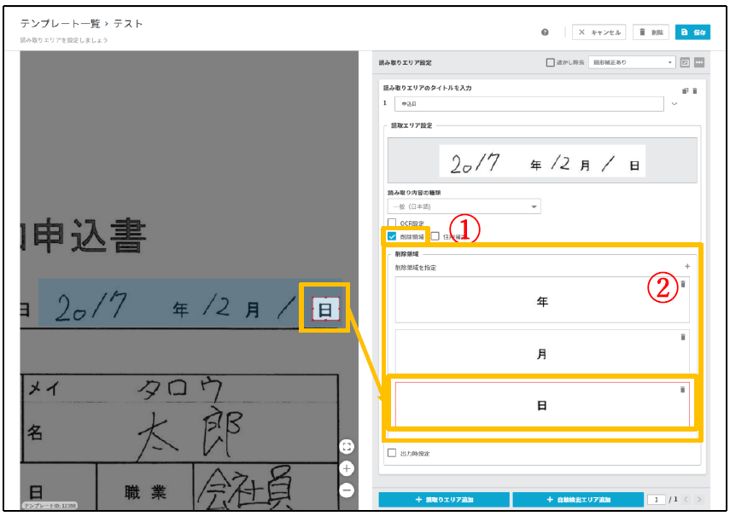 ②読取エリアの中で読取対象外とする範囲を設定します(