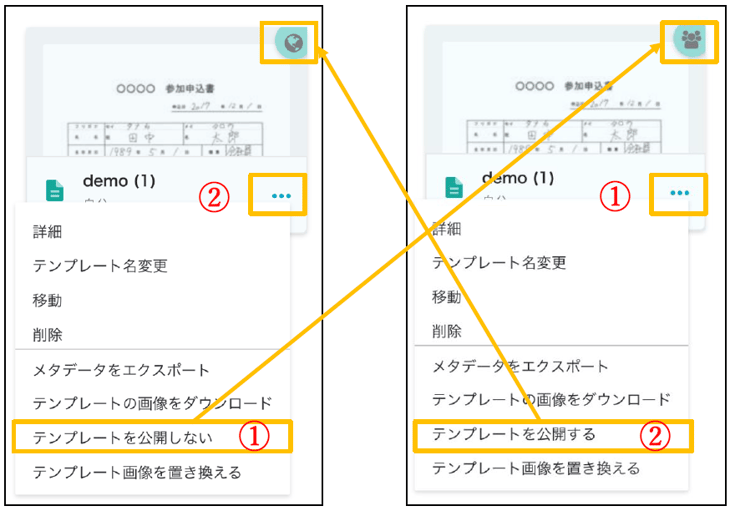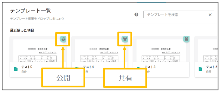 ※既存の設定済テンプレートは、全て「公開」設定になります。