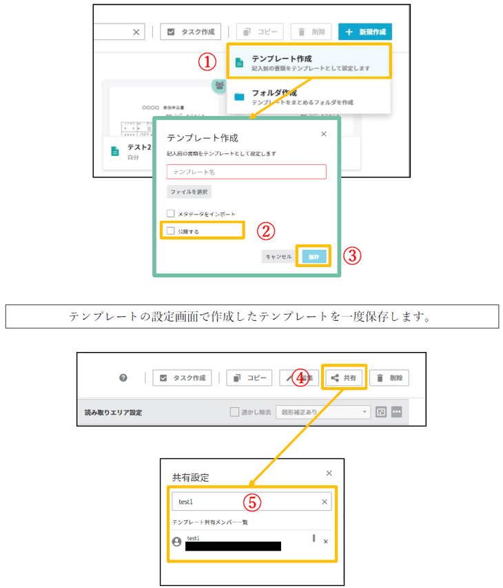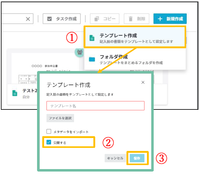 ※新しく作成するテンプレートは、「公開」または「共有」のいずれかを選択できます。
