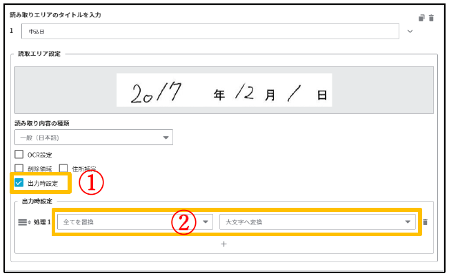 変換処理:「小文字へ変換」/「大文字へ変換」を選択