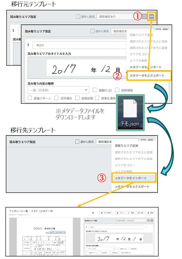 ※テンプレートの設定内容をエクスポートして別環境の別画像に適用することができます(設定項目が少しだけ異なる画像などに適用することで設定の工数を削減できます)。
